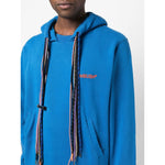 multicord-drawstring cotton hoodie from AMBUSH featuring electric blue, cotton, drawstring hood, embroidered logo at the chest, two side welt pockets, long sleeves and straight hem. Logo cotton hoodie Size and Fit - This piece fits true to size. We recommend you get your regular size. Model is 1,84m / 6ft 1in wearing size M
