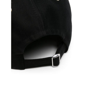 black cotton twill weave signature Ami de Coeur monogram embroidery to the front logo-engraved silver-tone hardware eyelet vents fabric-covered button at the crown six-panel construction round crown curved peak rear slide-buckle fastening This piece comes complete with a protective dust bag. Ami De Coeur baseball cap Size and Fit - BRIM: 7.0 Centimetres. CIRCUMFERENCE: 54.0 Centimetres.