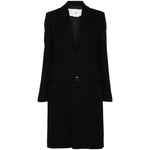black wool felted notched lapels front button fastening long sleeves buttoned cuffs straight hem American rear vent chest welt pocket two front flap pockets full lining Wool single-breasted coat Size and Fit - This piece fits true to size. We recommend you get your regular size. Model is 1,75m / 5ft 8in wearing size 36 (FR)
