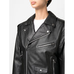 black lambskin grained texture silver-tone hardware wide notch lapels off-centre front zip fastening long sleeves straight hem cuff zips zip-fastening chest pocket two side zip-fastening pockets coin pocket Leather biker jacket Size and Fit - This piece fits true to size. We recommend you get your regular size. Model is 1,75m / 5ft 8in wearing size 40 (IT)