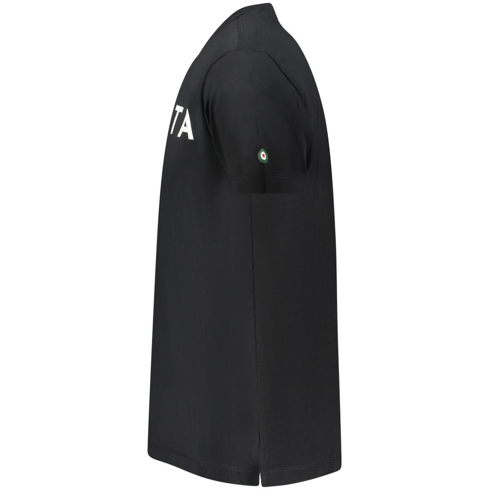 Elevate your wardrobe with the Armata Di Mare’s fusion of classic comfort and bold style. This sharp black T-shirt, adorned with a distinct print and the iconic logo, showcases a crew neck and short sleeves design that’s perfect for trendsetters on the move. Crafted from superior cotton, it boasts both luxury and understated elegance.