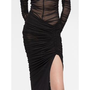 x Ester Manas ruched-detailed side-slit skirt from AZ FACTORY featuring black, stretch-design, ruched detailing, high waist, side slit and ankle-length. Side slit long skirt Size and Fit - This piece fits true to size. We recommend you get your regular size. Model is 1,75m / 5ft 8in wearing size 36 (FR)