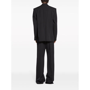 single-breasted wool blazer from BALENCIAGA featuring black, wool, notched lapels, shoulder pads, long sleeves, buttoned cuffs, front button fastening, chest welt pocket, two side flap pockets and straight hem. Wool single-breasted blazer jacket Size and Fit - This piece fits true to size. We recommend you get your regular size. Model is 1,84m / 6ft 1in wearing size M