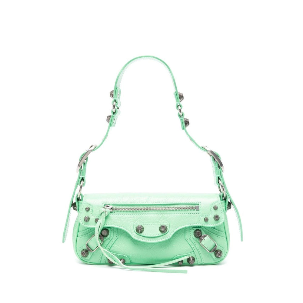 Green shoulder bag, magnetic closure, metal details, with adjustable shoulder strap, zip pocket in front. Le Cagole XS leather shoulder bag Size and Fit - Width 9,06 in / 23 cm
