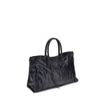 Balenciaga’s Le City Travel Bag is a high-class item made of fine lambskin leather that combines elegance and functionality. The two hand-woven leather handles lend a handcrafted and refined touch, while the adjustable and removable shoulder strap allows it to be worn with versatility, either by hand or on the shoulder. The zippered closure and knotted leather zipper pull add distinctive details, while the front zippered pocket offers convenience for quick access to essentials. Inside, a zippered pocket and cotton canvas lining provide organization and durability.
