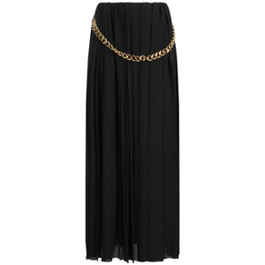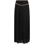 black crepe texture pleated skirt concealed side zip fastening chain-link detailing high-waisted belt loops ankle-length Chain embellished pleated skirt