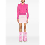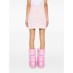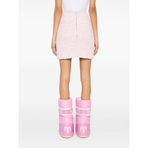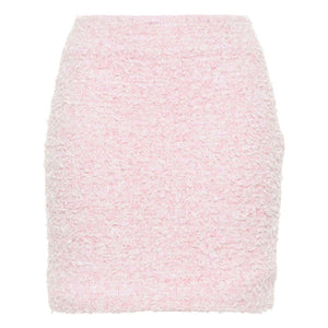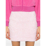 pink cotton blend tweed bouclé design mid-rise rear zip fastening straight hem full lining Tweed mini skirt Size and Fit - HIPS: 79.0 Centimetres. LENGTH: 41.0 Centimetres. WAIST: 57.0 Centimetres.