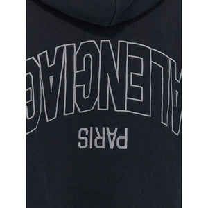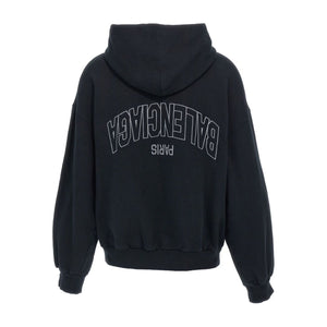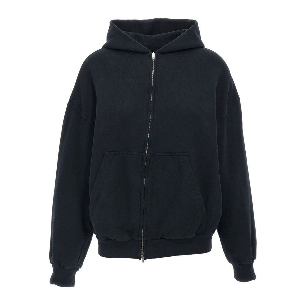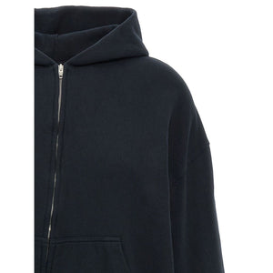 black dropped shoulders front zip closure long sleeves cuffs back embroidery Flipped Uni cotton hoodie