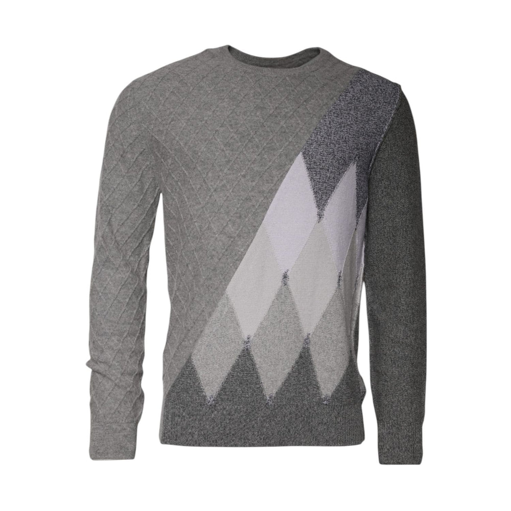 Ballantyne Gray Cashmere Argyle Intarsia Knit Crew Neck Sweater