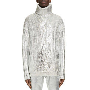 Experience the epitome of opulence with Balmain’s turtleneck sweater, masterfully crafted from a blend of virgin wool and lyocell. Its metallic-effect cable knit illuminates with every turn, while the stylishly dropped shoulders underscore a contemporary silhouette. Each ribbed trim element perfectly frames the garment, offering a snug and luxurious feel that stands testament to Balmain’s dedication to high fashion and exceptional quality. Dare to dazzle in this brown statement piece that’s set to elevate your wardrobe with a bold and trendy edge.