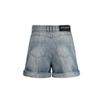 Balmain’s Denim Shorts combine a bold aesthetic with iconic details. Featuring a refined diamond-stitched pattern, they feature a waistband with belt loops and the unmistakable triple back loop. The front closure is embellished with metal "Gold and Silver Coin" buttons and a zipper under the flap. Completing the design are two knight pockets on the front for a bold and recognizable look.