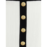 Balmain’s mini Skirt enhances the silhouette with a refined ribbed knit. Decorative gold metal "Coin" buttons at the front add an iconic and distinctive touch, while contrasting ribbed trim completes the design with character and sophistication.