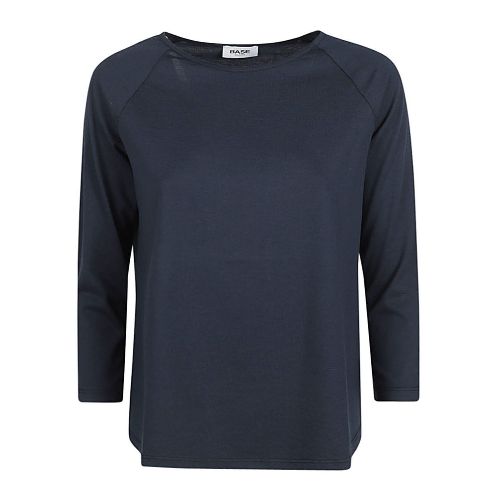 Blue 3/4 sleeves cotton crewneck sweater. Cotton crewneck sweater Size and Fit - This piece fits true to size. We recommend you get your regular size. Model is 1,75m / 5ft 8in wearing size 40 (IT)