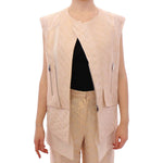Zeyneptosun 的全新无袖锦缎背心是优雅和独特设计的典范。这款非凡单品是全新的,带有标签,真正体现了 Zeyneptosun 对精湛工艺和艺术的执着。其奢华的米色搭配别致的银色金属细节,彰显出一种散发着精致的时尚风格。