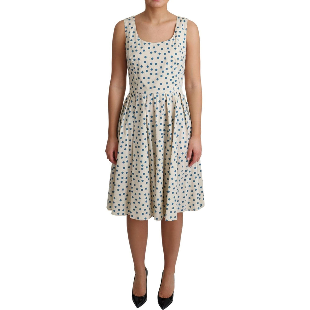 这款来自著名 Dolce & Gabbana 系列的 A 字形无袖连衣裙,散发出永恒的优雅气息。这款连衣裙采用迷人的米色色调,搭配精致的蓝色圆点,是经典风格与俏皮风格的结合。这款连衣裙在意大利精心制作而成,采用 100% 纯棉面料,既舒适又优质。这款连衣裙背部采用时尚拉链开合,并饰有标志性徽标细节,彰显出独特的奢华感。无论您是参加白天活动还是晚间晚会,这款连衣裙都一定会让您显得高雅。