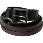 Dolce & Gabbana Black Brown Leather Silver Metal Buckle Belt