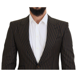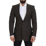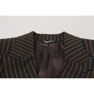 这款令人惊叹的修身西装外套彰显了 Dolce & Gabbana 的卓越工艺,让您尽享精致。这款单排扣西装外套采用奢华的纯羊毛和氨纶混纺而成,剪裁精良,既舒适又有型。这款西装外套饰有黑色和棕色条纹,采用尖头翻领,并饰有设计师的标志性徽标,是挑剔绅士的衣橱经典单品。