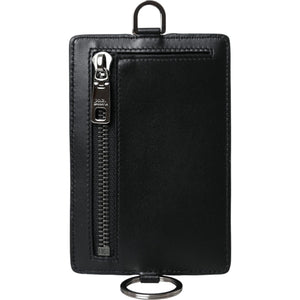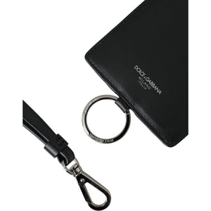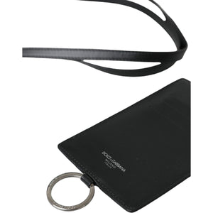 Dolce & Gabbana Black Calf Leather Lanyard Logo Card Holder Men Wallet