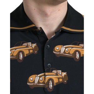 华丽全新带标签 100% 正品 Dolce & Gabbana 棉质领口 Polo T 恤,带有汽车印花。