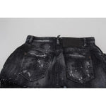 Dsquared² Black Checkered High Waist A-line Denim Mini Skirt