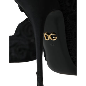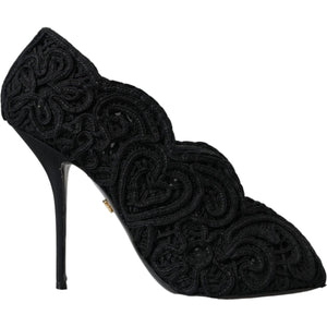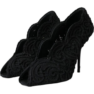 Dolce & Gabbana Black Cordonetto Ricamo Pump Open Toe Shoes