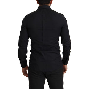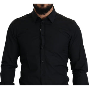 优雅修身黑色棉质正装衬衫