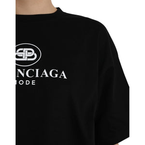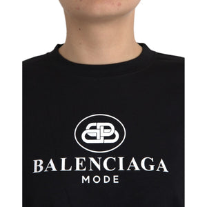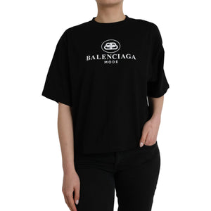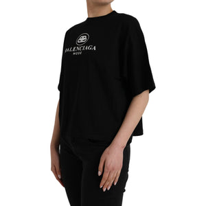 Balenciaga Black Cotton Logo Crew Neck Short Sleeves T-shirt