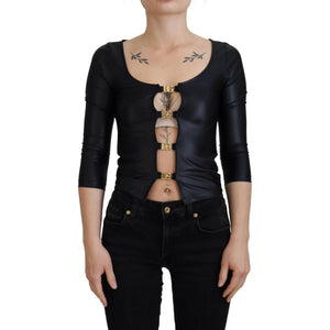 穿上这款令人惊艳的Dolce & Gabbana女士 3/4 袖上衣,走进高级时尚的世界。这款上衣采用多种材料精心制作而成,既舒适又合身,是永恒风格和奢华的体现。别致的黑色色调与品牌标志性的金色徽标金属细节相得益彰,对于那些希望用一丝魅力提升衣柜的人来说,它是必备单品。