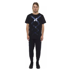 这款时尚的黑色 T 恤融合了舒适感和现代风格,采用经典圆领设计,饰有艺术印花,为您的休闲装增添一抹亮色。这款百搭单品由著名设计师 Nicolo Tonetto 设计,是任何现代衣橱的完美补充,将简约与精致细节融为一体。短袖设计使其成为温暖天气的理想选择,或作为晚间外出时夹克内搭的理想选择。