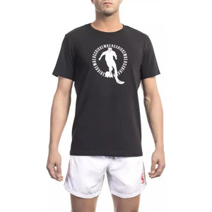 这款时尚的黑色 T 恤完美融合了时尚与舒适,正面印有醒目的印花,背面印有标志性的 Bikkembergs 标志。这款 T 恤采用优质棉混纺面料制成,手感奢华,版型修身。它是您休闲衣柜的必备单品。