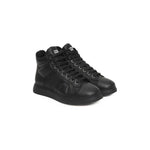 真皮高帮运动鞋。橡胶鞋底。正面有标志。