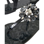 Dolce & Gabbana Black Crystal Flats Sandals Flip Flops Shoes