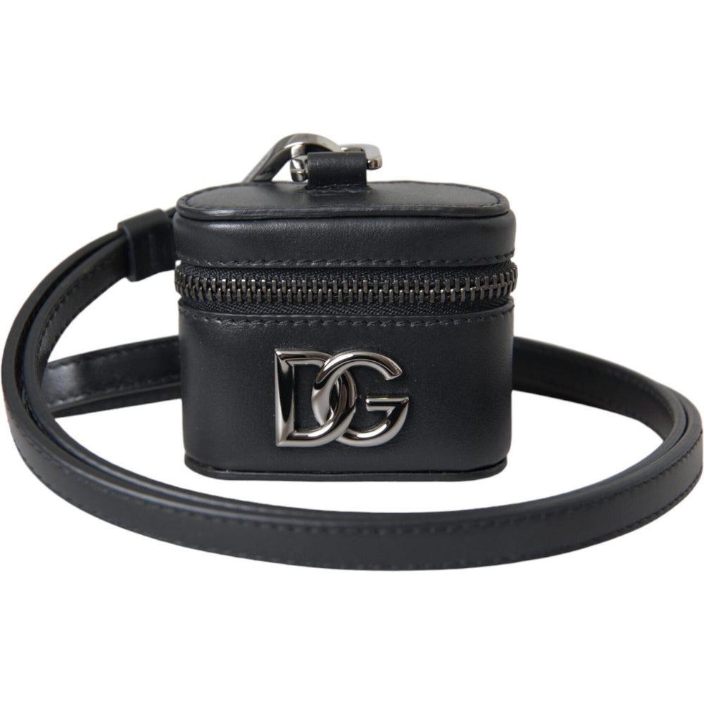 Dolce & Gabbana Black DG Logo Leather Silver Metal Airpods Case