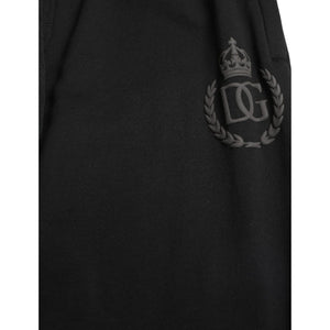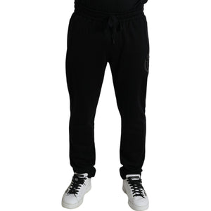 优雅黑色棉质慢跑裤,带徽标刺绣
