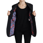 黑色花朵单排扣大衣