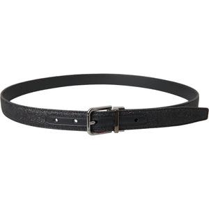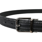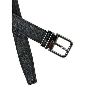 Dolce & Gabbana Black Glittered Leather Silver Buckle Belt