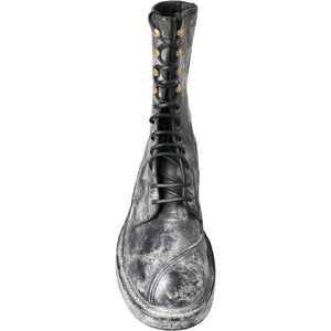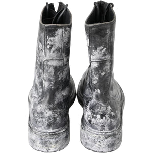 这款令人惊艳的系带靴彰显非凡风格,是精湛工艺的体现。这款靴子采用时尚的黑色和灰白渐变色,完美融合了奢华与舒适。采用优质小羊皮和小牛皮材料制成的无可挑剔的构造确保了耐用性,而智能橡胶外底则为任何环境提供了实用性。这款靴子由 Dolce & Gabbana 设计,是任何时尚衣橱的必备单品。