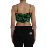 Dolce & Gabbana Black Green Leaf Silk Halter Cropped Top