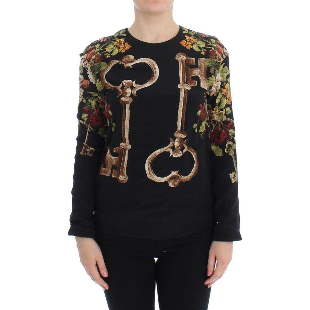Dolce & Gabbana 的这款令人惊艳的真丝衬衫彰显精致的本质,为您的高端衣橱增添奢华气息。这款单品来自备受推崇的 MainLine 系列,采用醒目的中世纪钥匙和花卉印花,搭配经典的黑色背景,确保散发出独特的 T 台魅力。这款长袖上衣在意大利完美制作,配有优雅的后扣开口和精致的徽标细节。