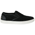 Dolce & Gabbana Black Lace Leather Logo Flat Slip-On Sneakers