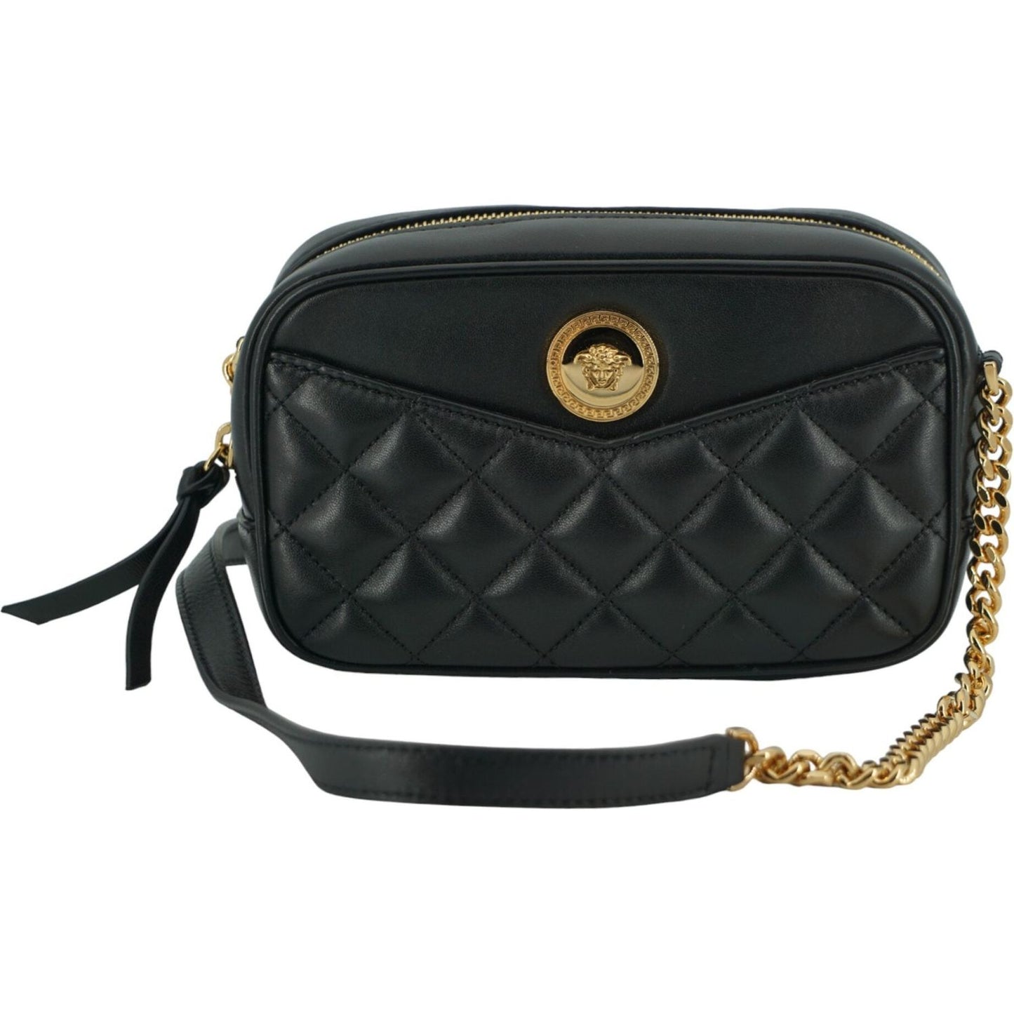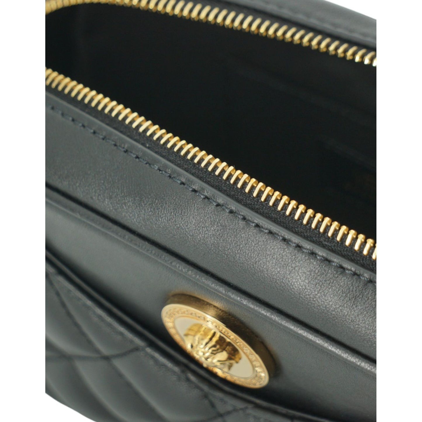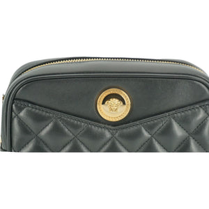 这款令人惊叹的新款小型相机斜挎包让您尽情享受 Versace 的奢华。这款包采用奢华的羔羊皮制成,不仅是奢华的象征,也是集功能性和时尚性于一体的配饰。时尚的黑色可与任何服装相得益彰,是您衣柜中的百搭单品。金色美杜莎头像标志增添了一丝标志性魅力,可调节肩带提供多种佩戴方式——可挎在肩上或斜挎在身上,解放双手。其小巧的尺寸非常适合放置必需品,配有方便的内部插袋和外部隔层,便于整理物品。