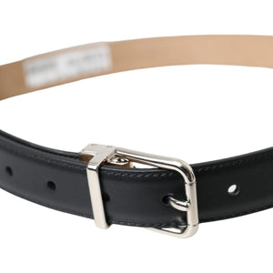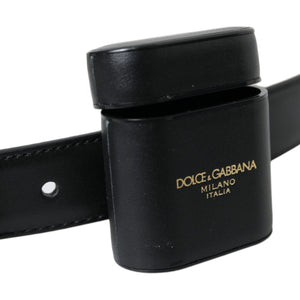 Dolce & Gabbana Black Leather Airpods Case Silver Buckle Belt