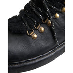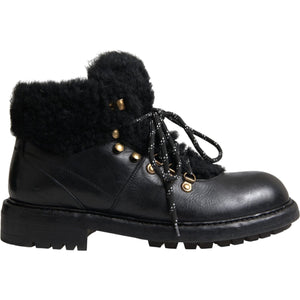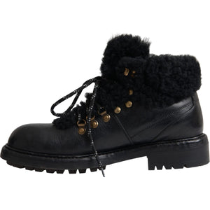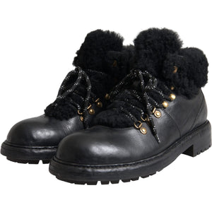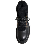 Dolce & Gabbana Black Leather Bernini Shearling Boots Shoes