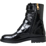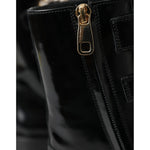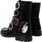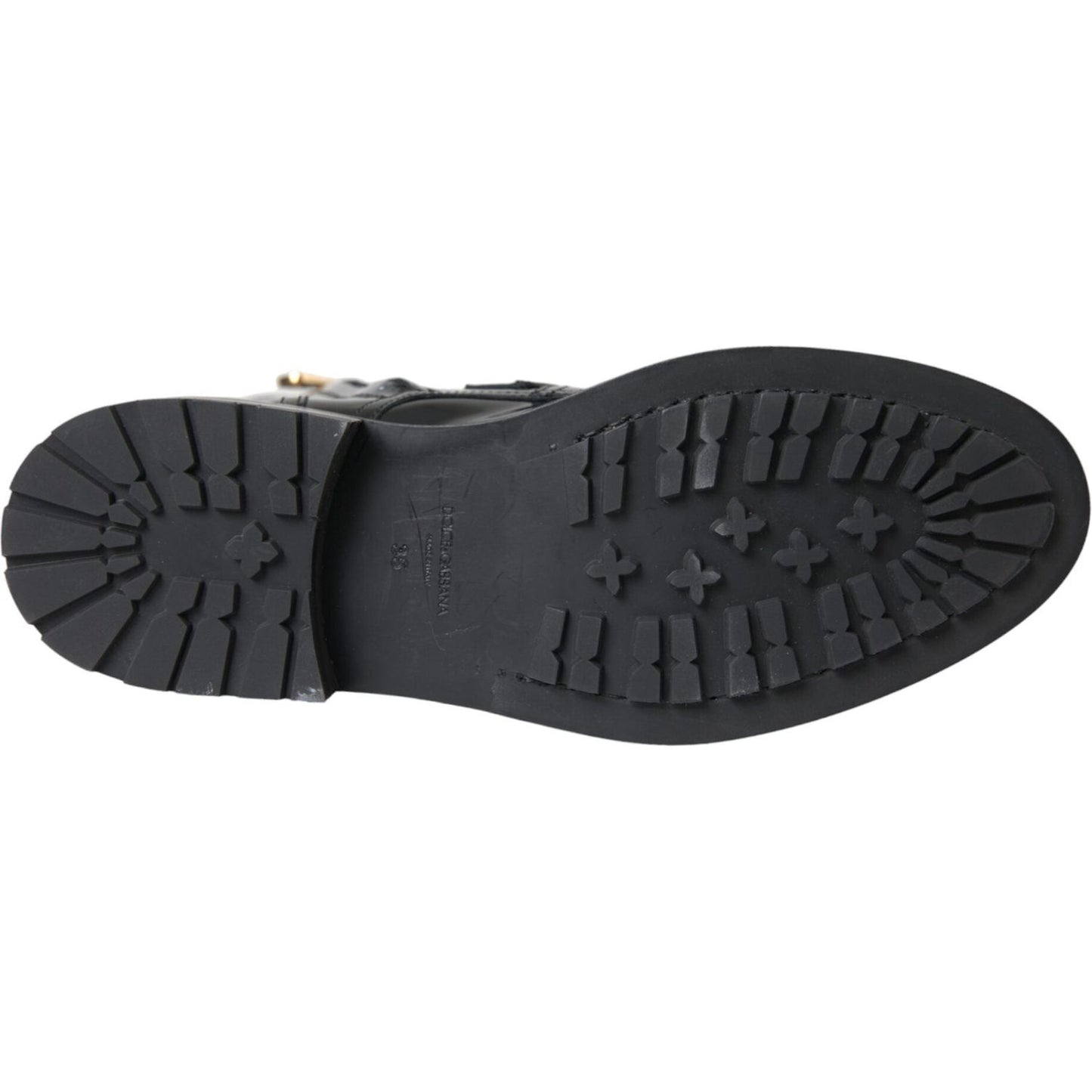 Dolce & Gabbana Black Leather Crystal Buckles Boots Shoes