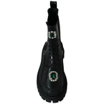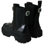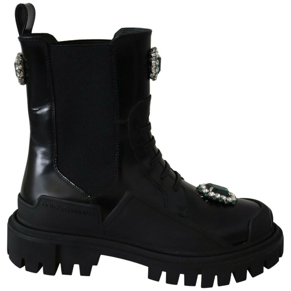 穿上这款 Dolce & Gabbana 奢华中筒战斗靴,尽显精致风格。这款 100% 皮革靴子采用无可挑剔的意大利工艺制作而成,不仅能提升您的整体形象,还能提供卓越的舒适性和耐用性。显眼的黑色色调可与任何服装相得益彰,而独特的透明和绿色水晶装饰则为您的步伐增添一丝魅力。这款靴子采用坚固的橡胶鞋底和方便的弹性侧带,既实用又时尚。拥抱 Dolce & Gabbana 的最新产品,每一步都彰显个性。