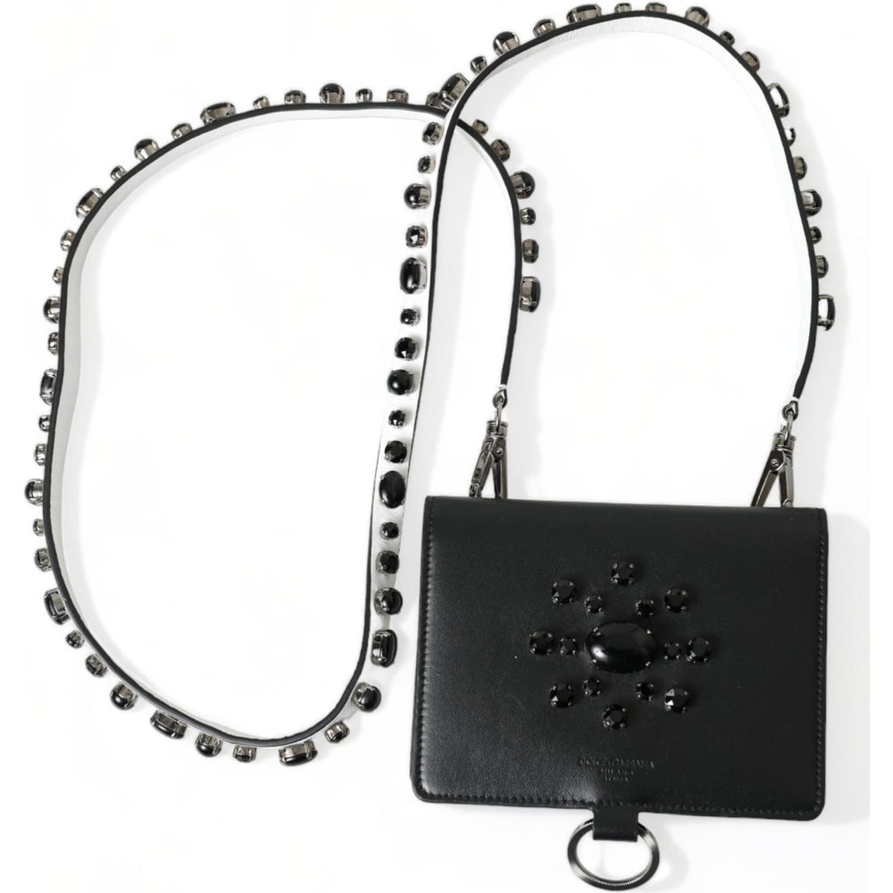 这款精美的黑色小牛皮卡夹采用 Dolce & Gabbana 风格,巧妙地装饰着闪亮的水晶装饰,让您尽享奢华。这款卡夹是精湛工艺的典范,设计时尚,配有内部卡槽,便于整理物品,配有方便拆卸的颈带,佩戴起来十分精致。磁性按扣可固定您的必需品,银色金属细节增添了一丝永恒的优雅。这款产品非常适合那些欣赏功能性和时尚感的人,它自豪地在意大利制造,保证了正品和卓越品质。