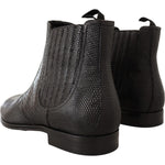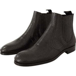 优雅黑色皮革蜥蜴皮德比靴