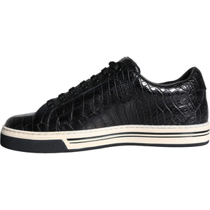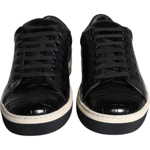 Dolce & Gabbana Black Leather Men Low Top Sneakers Shoes