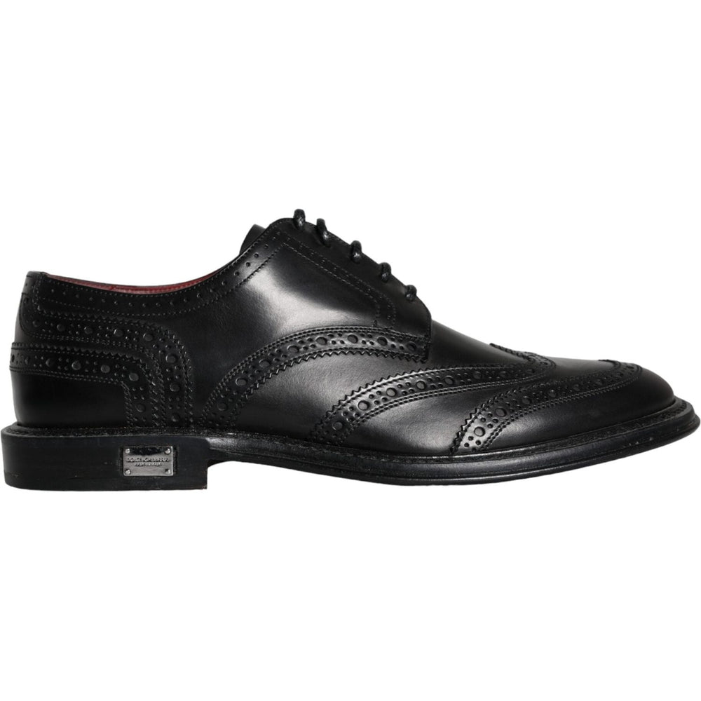 Dolce & Gabbana Black Leather Oxford Wingtip Formal Men Shoes