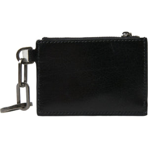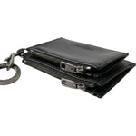 黑色皮革拉链徽标钥匙扣零钱包钥匙扣钱包